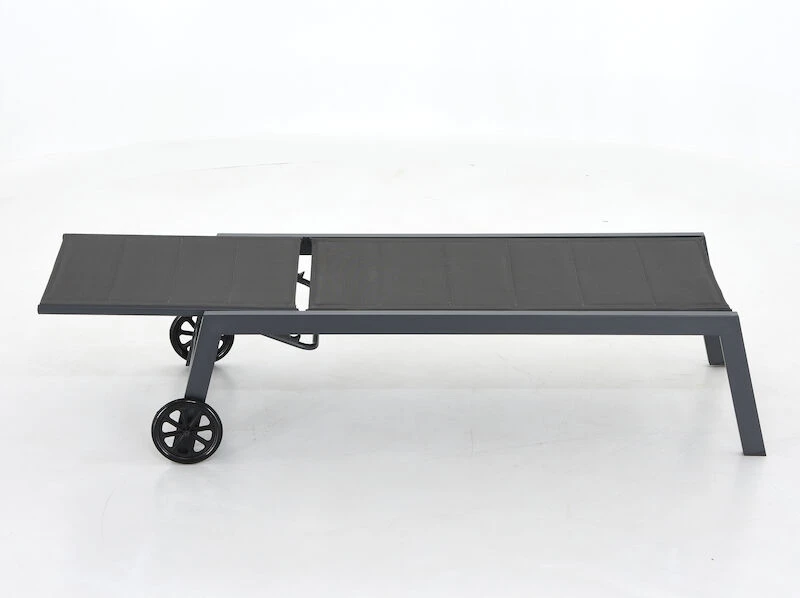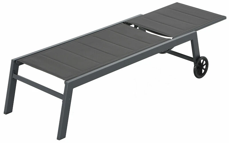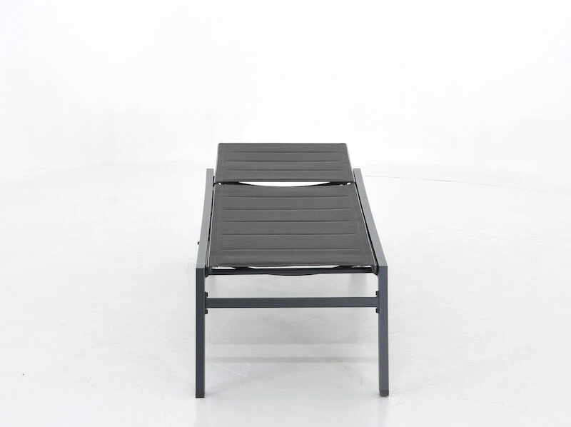 4Living Hilda on alumiinirunkoinen harmaa aurinkotuoli, jossa on mukava rentoutua ja nauttia aurinkoisista päivistä. Pääpäädyssä olevien rankaiden avulla aurinkotuolia on helppo siirtää. Makuu- ja selkänojaosassa on pehmustettu tummanharmaa textline kangas, joka antaa hiukan pehmeyttä oleskeluun. Selkänoja on säädettävissä viiteen eri asentoon.