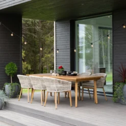Kaunis, bambusta valmistettu Bloomingville Sole lounge tuoli tuo katettuihin ulkotiloihin maanläheistä ja boheemia tunnelmaa. Tuolissa on polyester-kankainen pehmuste, jossa irroitettava päällinen. Sen voi pestä 30 asteessa. Päälliset eivät ole vedenkestäviä, joten ne kannattaa suojata sateelta. Tuolin hoito-ohjeena kostealla pyyhintä. Yhdistä saman sarjan sohvaan, aurinkotuoliin sekä sohvapöytään. Maximi painoraja 120 kg. Bambu patinoituu sääolosuhteissa ja sitä ei ole käsitelty kestämään ulkokäytössä taivasalla eikä kosteassa. Kalusteen voi sijoittaa ulos lasitettuun tilaan, mutta sitä ei saa jättää sään armoille. Tuote on hyvä käsitellä jo uutena liuotinpohjaisella puuöljyllä (esim. Valtti puuöljyllä) ja säilyttää sisätiloissa talvella.