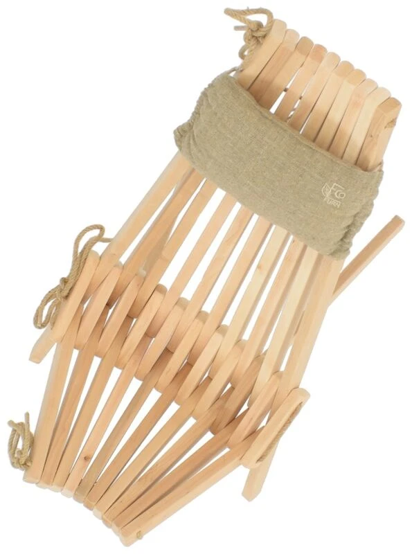 Skandinaavisen tyylikkään ja ajattoman Ecofurn ekotuolin valmistuksessa ei ole käytetty mitään muuta kuin puuta ja narua. Tämä upea ja ekologinen puutarhakaluste erottuu edukseen! Pelkistetyn kaunis ekotuoli soveltuu useaan eri tilaan ja käyttötarkoitukseen väristä ja materiaalista riippuen: ekotuoli sopii niin rantakalliolle merimaiseman ihailuun kuin myös saunaan lauteiden tilalle tuomaan persoonallisempaa ilmettä. Ekotuolin puuosat ovat saaneet kaverikseen hamppunarun, jolla tuolin osat kiinnitetään. Ekotuoli on saanut inspiraationsa puhtaasta Suomen luonnosta, jonka keskelle se sopii loistavasti. Ekotuoli tuo myös ripauksen luontoa urbaaniin ympäristöön: mikä voisi muistuttaa luonnosta paremmin kuin puuntuoksu parvekkeella? Tämä ekotuoli on helppo kasata ja kevyt liikutella, ja tuoli menee purkamattakin pieneen tilaan perinteisiin aurinkotuoleihin verrattuna. Ecofurn ekotuoli on paitsi tyylikkään näköinen, siinä on myös todella mukava istua ja rentoutua vaikka hyvän kirjan parissa. Jos etsit ekologisesti kestävää aurinkotuolia, mutta et halua tinkiä tyylistä ja istumismukavuudesta, Ecofurn ekotuoli on nappivalinta. Ekotuolin muotoilu sopii monenkokoiselle istujalle, ja tuoli antaa selälle hyvin tukea: tuolin ergonomia perustuu naruun, joten se mukautuu jokaisen istujan mukaan. Kun kokoat tuolia, on naruissa teipit, ota lopuksi teipit pois ja laita pienet solmut kuvan mukaisesti narujen päihin. Tuolissa on kaksi eri asentoa: lepoasento ja istuma-asento. Tuolissa on matala istuinkorkeus, joten se ei tarvitse välttämättä edes rahia kaverikseen. Täysin kierrätettävä, uusiutuvalla energialla valmistettu, laadukkaat kestävät narut, oksatonta ykköslaadun puuta, ekologinen ja kestävä, tuotteeseen saatavilla varaosia, viimeistelty ja suojaava kuljetuspakkaus.