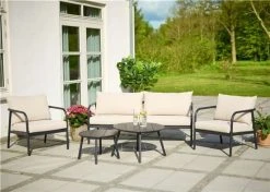 Tyylikäs ja moderni Envy Kaja nojatuoli sopii hyvin Skandinaaviseen sisustukseen. Kaunis vaalea polyrottinki istuinosa ja mustaksi maalatut jalat. Istuintyynyjen paksuus 5 cm. Polyrottinki on helppohoitoinen materiaali, joka kestää hyvin ulkona. Kevyen ja ilmavan näköinen nojatuoli on tukeva ja helposti siirreltävissä. Yhdistämällä saman sarjan sohvaan, saat näyttävän kokonaisuuden. Istuin pehmusteiden päällinen 100% Polyesteria ja pesu 30°.