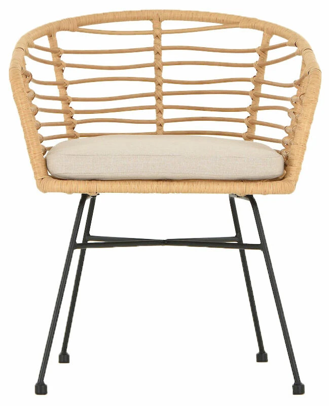 Envy Kaja polyrottinkinen tuoli on skandinaavisen tyylikäs valinta ulkotilojen sisustukseen. Materiaalina on mustaksi maalattu teräsrunko, istuinosa on helppohoitoista ja kestävää, luonnonrottinkia jäljittelevää polyrottinkia. Tuolin mukana tulee kuvissa näkyvä pehmuste, materiaali 100% Polyesteriä ja pesu enintään 30°. Harmaa istuinpehmuste viimeistelee istuinmukavuuden. Yhdistä saman sarjan sohvaan tai muihin nojatuoleihin ja loihdi upea kesäkeidas kesän helteisiin hetkiin.