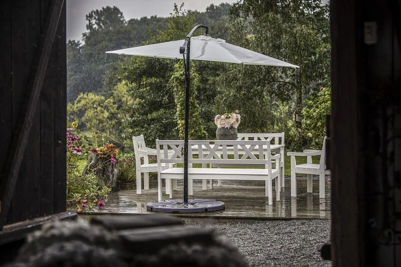 Mänty on materiaalina kalusteissa erittäin laadukas ja kestävä. Puukalusteet on kuitenkin tärkeä pitää kuivina ja puhtaina, sillä likainen ja kostea pinta sitovat kosteutta ja alistavat homeelle. Pitkät sadejaksot ovat puupinnalle vaativia. Huomioitavaa puisessa tuotteessa on se, että luonnontuotteena puussa voi esiintyä vinoutta, halkeamia sekä tuote voi olla oksainen. Maalattuja kalusteita koskee muuten samat ohjeet, mutta tuotetta ei kuulu öljytä. Aurinko ja sääolosuhteet voivat haalistaa väriä ajan saatossa ja ensimmäisenä haalistuu yleensä pöydän kansi tai tuolien käsinojat. Riippuen siitä kuinka hyvin kalustetta pitää suojattuna ja puhtaana, voi se vaatia huoltomaalauksen myöhemmin. Varmista talvisäilöön tuotetta siirtäessä, että kalusteet ovat kuivia ja säilytyksessä pääsee ilma kiertämään kalusteen ja suojan välissä. Lisää ohjeita löydät täältä: https://www.veke.fi/vinkit/ideat/puutarhakalusteiden-materiaalit-huolto-ja-sailytys