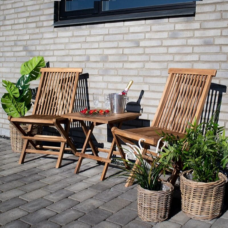 Tiikistä valmistettu House Nordic Bilbao kahvipöytä, koossa 50×50 cm. Tiikki on materiaalina hyvin kestävä, se kestää erilaiset säänvaihtelut sekä kuumuuden ja lämpötilojen vaihtelun. Tämän tuotteen tiikki on peräisin Indonesiasta ja sillä on Flegt-sertifikaatti, mikä tarkoittaa, että puut on kaadettu laillisesti. Sävy on kauniin kullanruskea, joka tuo ulkotilojen sisustukseen kodikasta tunnelmaa ja lämpöä. Pöytä on taitettava, joten se menee kasalle ja vie säilytyksessä vain vähän tilaa. Helppo kuljettaa ja ottaa mukaan myös esimerkiksi piknikille. Kuvissa näkyvät tuolit eivät kuulu mukaan toimitukseen.