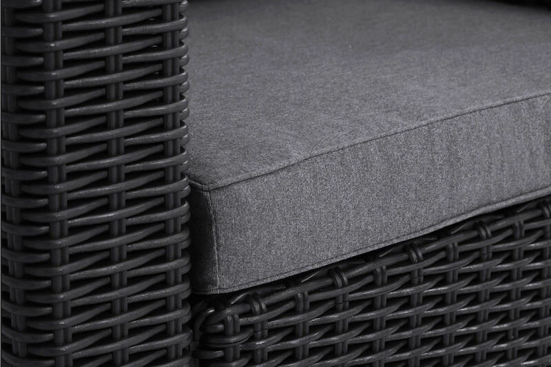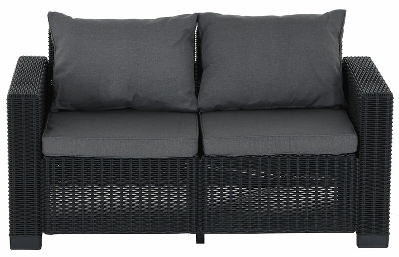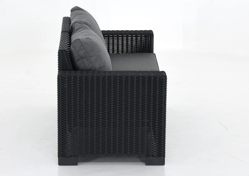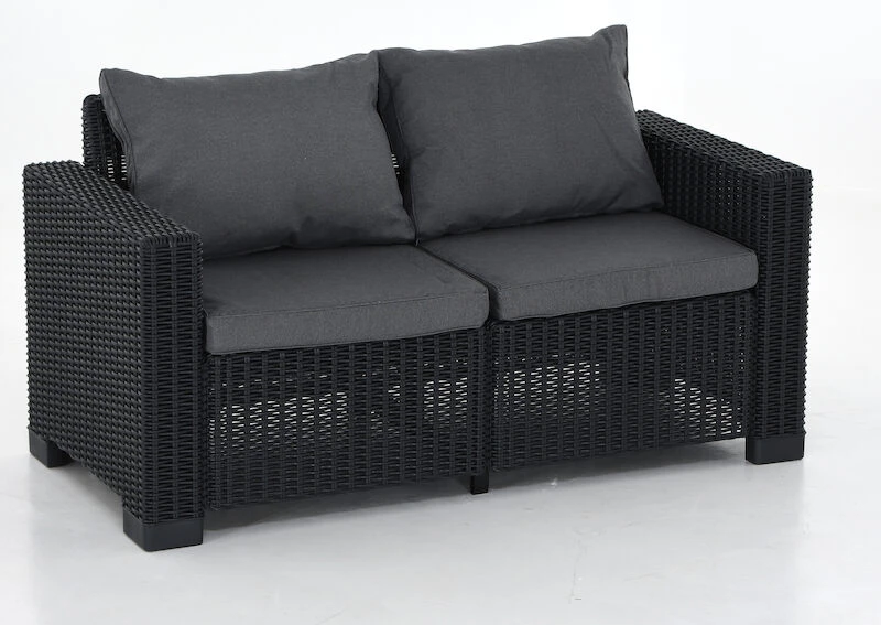 Moderni punottu 2-istuttava sohva tyylikkäissä neutraaleissa väreissä. Huoltovapaa UV-suojattu kestomuovista punottu runko kestää erittäin hyvin aikaa ja pohjoisen sään vaihteluita. Mukana tulevat pehmusteet on valmistettu vettä hylkivästä kankaasta, ne on kuitenkin hyvä viedä esim. katoksen alle sateella. Kevyen mutta tukevan runkorakenteen ansiosta sohvaa on helppo liikutella.