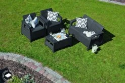 Chicago-sohvaryhmä tuo eleganssia ja mukavuutta ulkotiloissa oleskeluun muuntaen terassin täydellieksi oleskelutilaksi. Pakettiin kuuluu kolmen istuttavan sohvan lisäksi pöytä sekä kaksi nojatuolia sekä istuinpehmusteet. Pehmusteet hylkivät vettä, ne on silti hyvä säilyttää sateisina aikoina säältä suojassa. Tarkat mitat löytyvät tuotekuvista. Tämän kevyen kaluston liikuttelu on vaivatonta ja kokoaminen helppoa mukana tulevien ohjeiden ja tämän videon avulla: