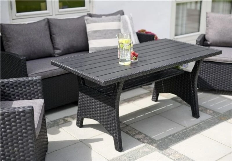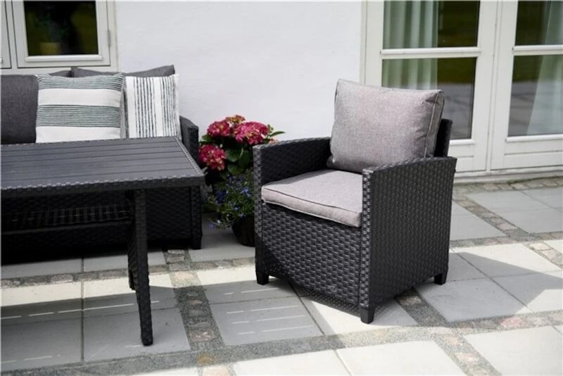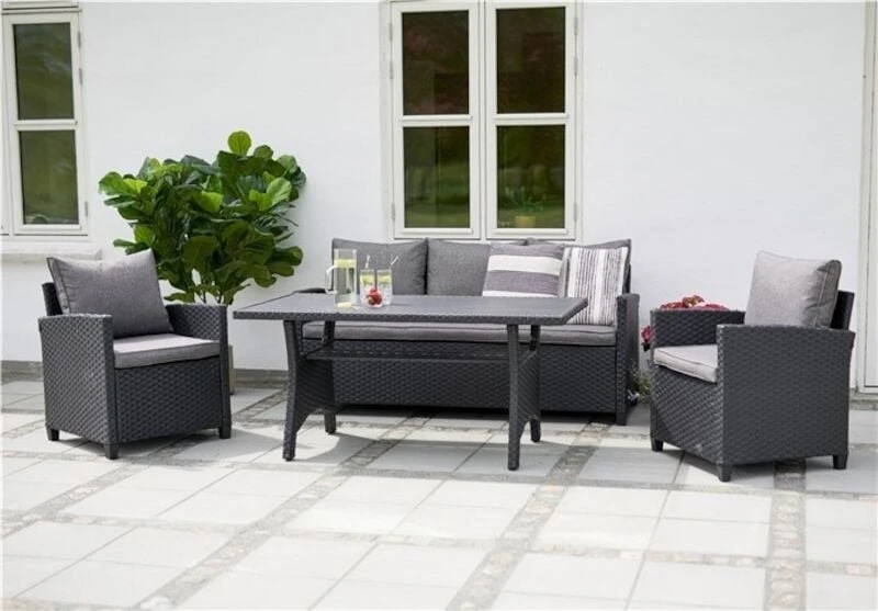 Ester-sohvaryhmä tuo eleganssia ja mukavuutta ulkotiloissa oleskeluun muuntaen terassin täydellieksi oleskelutilaksi. Helppohoitoinen, tukeva ja muotoilultaan siro Outfit Ester polyrottinkinen sohvaryhmä. Ryhmään kuuluu 3-istuttava sohva, 2 nojatuolia ja sohvapöytä. Sohvapöydän mitat ovat: leveys 145cm, syvyys 75cm ja korkeus 67cm. Pehmusteet hylkivät vettä, ne on silti hyvä säilyttää sateisina aikoina säältä suojassa.