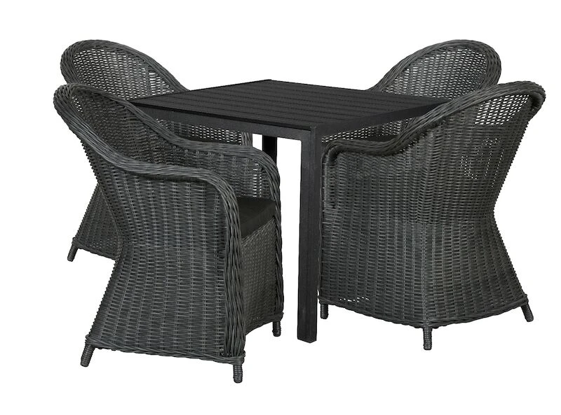 Outfit Noah puutarhapöytä on tyylikäs ja käytännöllinen. Noah malli sopii myös pienemmälle terassille ja on helppo säilyttää talven yli kokonsa ansiosta. Koko 90×90 cm. Väri musta. Valmistettu Alumiinista ja Aintwoodista. Tuolit eivät sisälly toimitukseen!