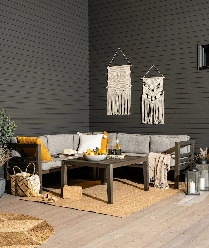 Kotimainen Laituri sohvapöytä on laadukas ja kestävä valinta, joka on valmistettu tiheäsyisestä männystä. Kalusteissa käytetty puu on PEFC-sertifioitua, eli puutavara on peräisin kestävästi hoidetusta metsästä. Laituri-terassikalusteissa on käytetty vain kestävää paksua puutavaraa ja kalusteet tehdään alusta loppuun Suomessa. Pintakäsittelynä on kuultomusta öljykäsittely, joka antaa kalusteille erittäin tyylikkään viimeistelypinnan. Pintakäsittely tehdään kastelemalla, näin aikaansaadaan tasainen ja kestävä pinta, myös liitoskohdissa.