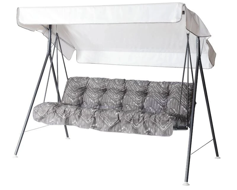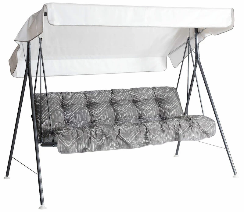 Mummolan mieleen tuova retro henkinen Varax Teneriffa pihakeinussa on ihana fiilistellä kesää yhdessä ystävien tai perheen kanssa. Keinun mukana tulee ihanan pehmeä pehmuste. Yhdistä keinu terassille muiden kesäkalusteiden kanssa tai pihamaan nurmikolle puun alle. Runko on tummanharmaasta teräsputkesta valmistettu ja esikäsitelty Bonderite® NT:llä. Selkänoja on sinkitty metalliritilällä. Istuinosassa myös sinkitty metalliverkko. Katoksen materiaali on PVC-muovia. Pehmusteiden kangas on puuvilla-polyesteri sekoitusta ja käsitelty likaa ja hometta hylkivällä teflon käsittelyllä. Kangas on Öko-tex standardin mukainen. Kestää jonkin verran kosteutta mutta suosittelemme suojaamaan sateelta. Pehmusteiden taustapuoli on yksiväristä apukangasta.