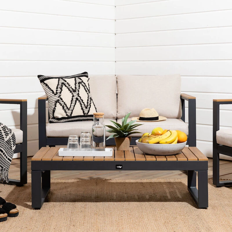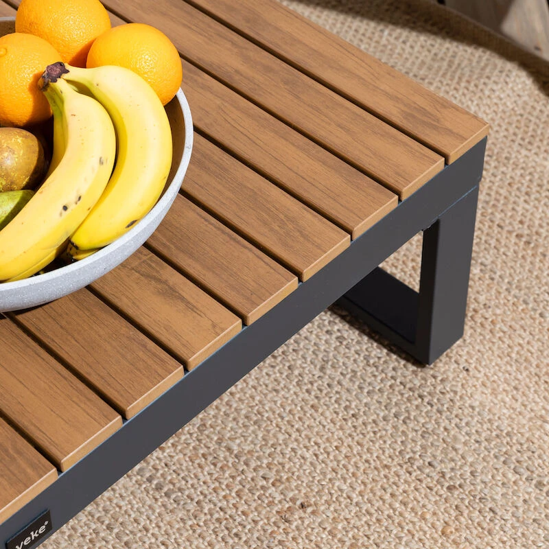 Tyylikäs Aava sohvapöytä kestävällä alumiinirungolla ja helppohoitoisella Aintwood kannella. Aintwood on puukomposiittia.