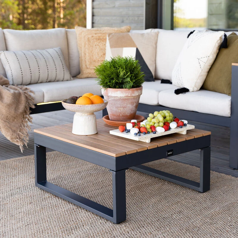 Tyylikäs Aava sohvapöytä kestävällä alumiinirungolla ja helppohoitoisella Aintwood-puukomposiitti kannella.