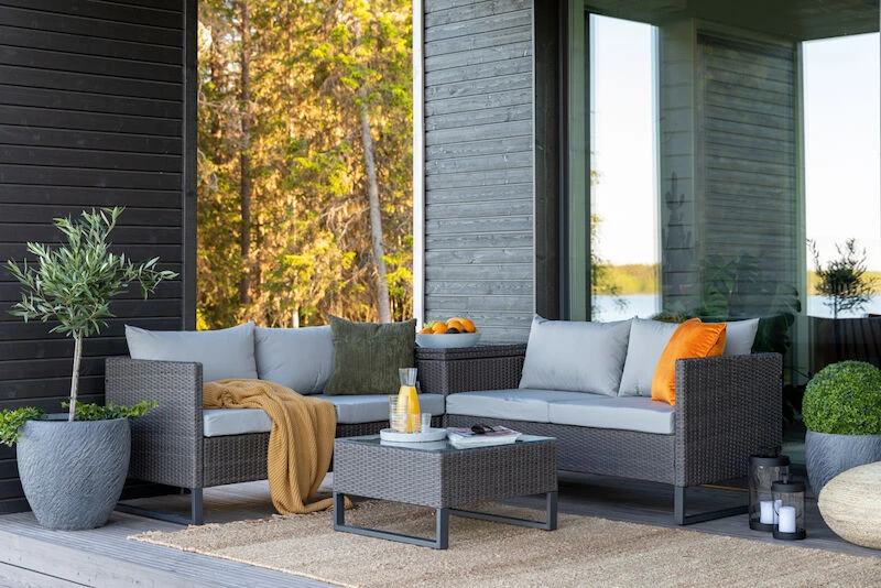 Pehmusteet tulee säilyttää sateelta suojassa: