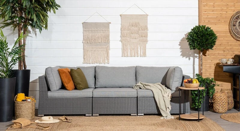 keskimoduuli sopii käytettäväksi sellaisenaan tai yhdistämällä muiden moduulien kanssa, jolloin saat luotua haluamasi kokonaisuuden terassille. Moduulin mukana tulee kiinnikkeet, joiden avulla sen saa kiinnitettyä helposti toiseen moduuliin. Keskimoduulissa on muhkeat pehmusteet, joiden päälliset on irroitettavissa ja pestävissä. Kangas on laadukas ja vettä hylkivä.