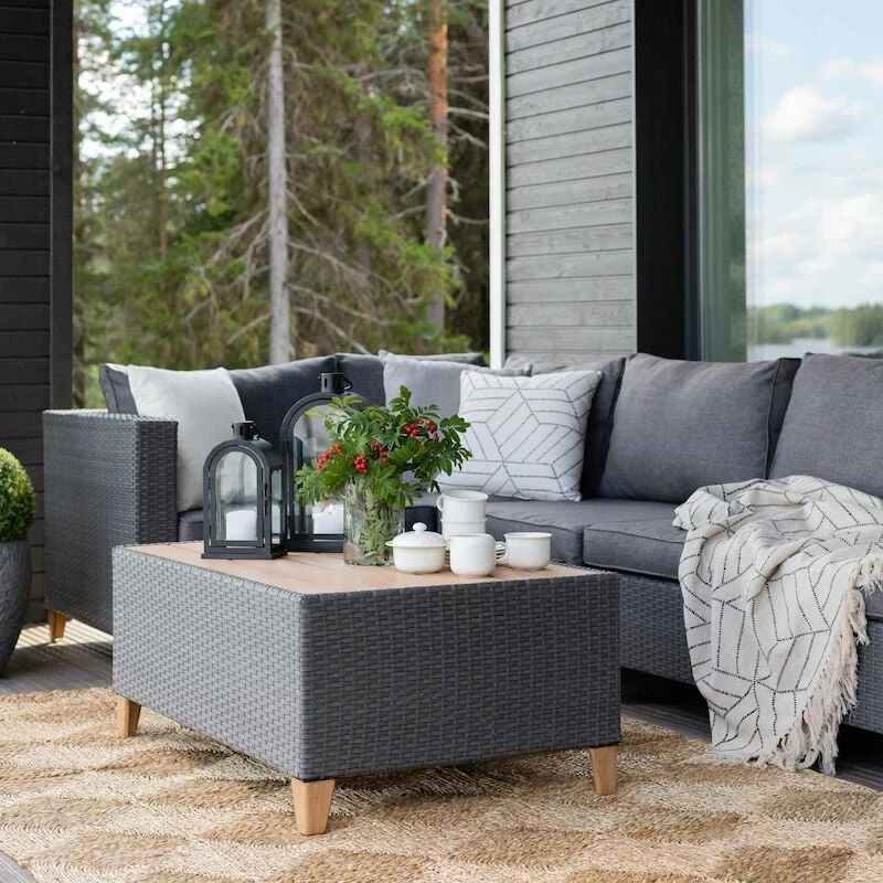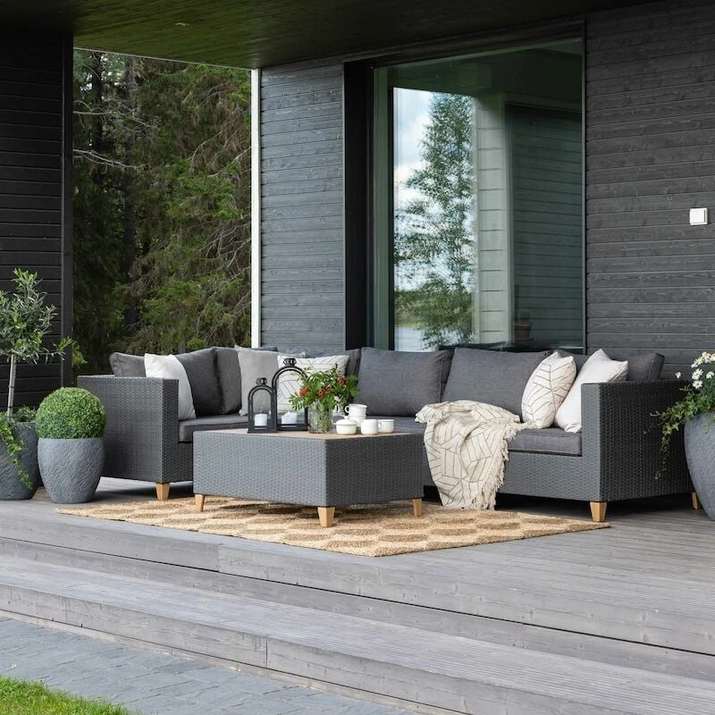 Veke Jersey Kulmasohva Ja Sohvapöytä, Tummanharmaa Polyrottinki