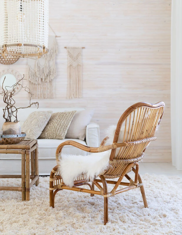Huom! Hinta sisältää rottinkituolin, ei sisällä miljöökuvissa näkyvää taljaa, rahia ja muita tuotteita.