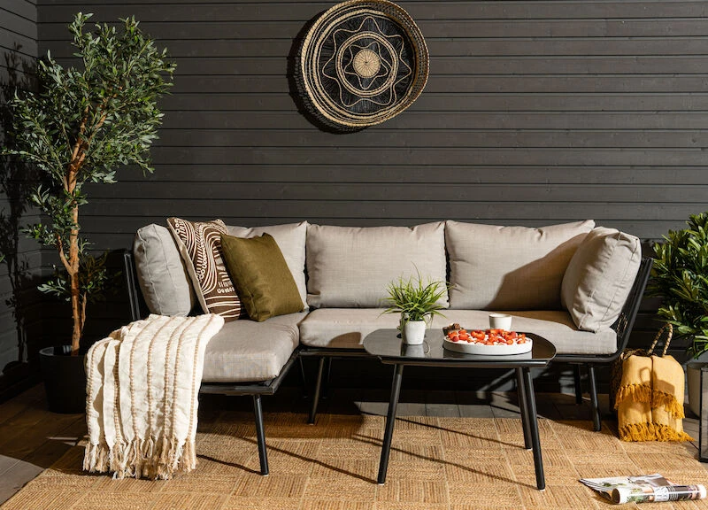 Loviisa divaanisohva ja sohvapöytä on elegantti kokonaisuus. Siro muotoilu ja rungossa käytetty pulverimaalattu teräs sekä kestävä polyrottinki ovat täydellinen yhdistelmä. Polyrottinki on kesäkalusteissa paljon käytetty ja suosittu materiaali sen helppohoitoisuuden ja kestävyyden vuoksi. Mukana tulee ihanat pehmusteet, jotka tuovat istuinmukavuutta niin paljon, ettet haluaisi koko kesänä muualla loikoillakaan! Osta lisäksi torkkupeitto ja voit nauttia päiväunistakin Loviisan kanssa. Divaanisohvan kätisyys ei ole vaihdettavissa.