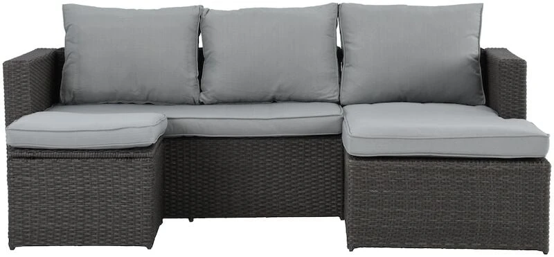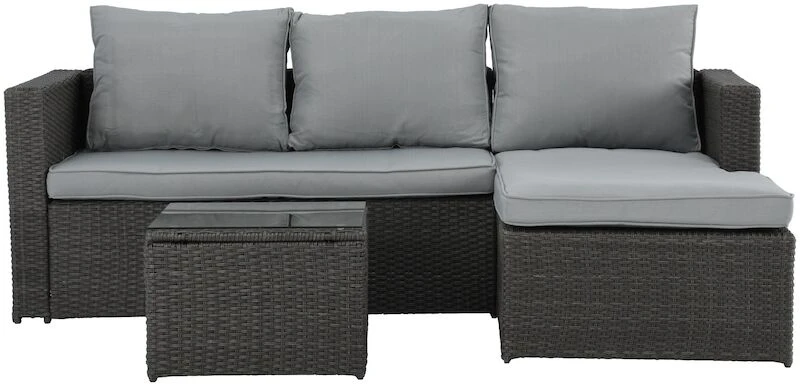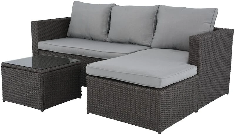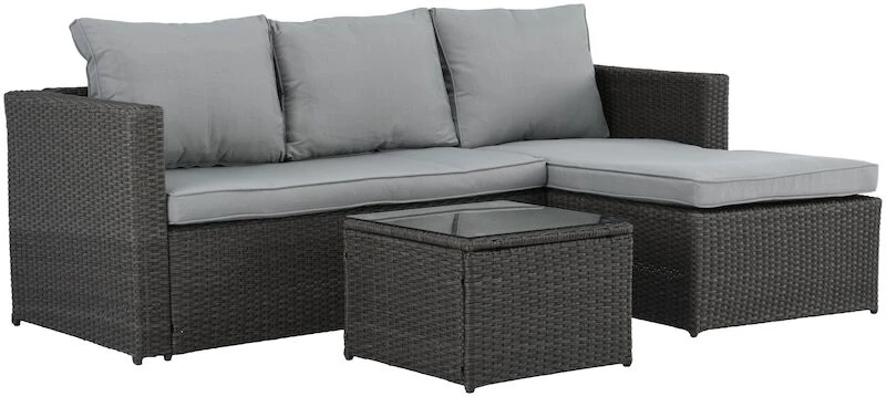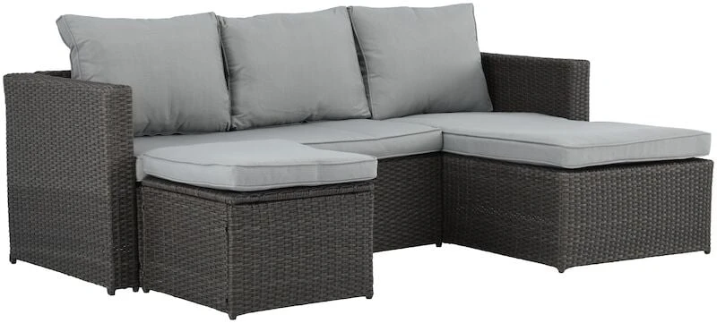 Tyylikäs ja helppohoitoinen Oakland divaanisohva, sohvapöytä ja pehmusteet. Sohvapöytää voidaan käyttää myös rahina, johon tulee myös pehmuste mukana. Pehmusteiden päälliset ovat irroitettavissa ja hellävaraisesti käsinpestävissä. Pehmusteet ovat tyylikkäät, vaaleanharmaat. Sohvapöydän/rahin mitat: 51×51 cm. Korkeus ilman lasia/pehmustetta 36 cm. Sohvan kätissyys ei ole vaihdettavissa. Sohva on oikean kätinen.