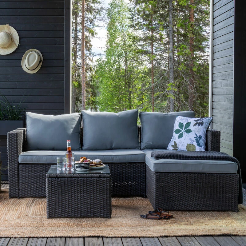 Polyrottinki materiaalina: Polyrottingin materiaalina on muovisekoite, joten se on kestävä ja joustava materiaali. Pinta puhdistetaan liinalla ja likatahrat miedolla pesuaineella. Voimakkaita kemikaaleja tai painepesuria polyrottinki ei kestä. Polyrottinkisiin kesäkalusteisiin löytyy omia hoitoaineita. Polyolyrottinki on materiaalina kevyt, joten polyrottinkikalustetta on tarvittaessa helppo siirrellä paikasta toiseen. Polyrottinkiset kalusteet voi huoletta jättää ulos vesisateeseen ja aurinkoon: niissä on UV-suoja, joten ne eivät haalistu auringossa eivätkä myöskään homehdu sateen sattuessa. Polyrottinki kestää myös talvipakkasia (-20°C asti), suosittelemme talveksi kalusteen suojaamista lumelta. Pakkasella polyrottinkikalustetta ei kannata käyttää, koska punos jäätyessään ei kestä rasitusta niin hyvin kuin normaalisti.
