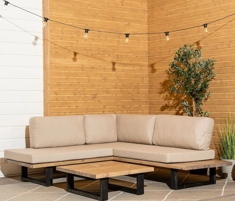 Saima on tyylikäs männystä valmistettu avokulmasohva, jonka selkeä muotokieli ja värit taipuvat erinomaisesti erilaisten terassien sisustamiseen. Istuinsosa on 4 cm paksua liimapuulankkua, joka on taatusti tukeva istua. Muhkeat pehmusteet takaavat miellyttävän istuintuntuman. Istuintyynyissä on narut, joilla istuintyynyt saa sidottua selkänojan runkoputkiin kiinni. Näin ollen istuintyynyjen valumisesta ei tarvitse huolehtia. Muhkeat selkätyynyt nojaavat vapaasti selkänojaan. Sekä istuin- että selkätyynyt on verhoiltu molemmin puolin laadukkaalla Texsilk-verhoilukankaalla, joka on viimeistelty vettähylkivällä Teflon pinnoitteella. Sohvan toisessa päädyssä on laskutilaa, jossa puun pinta tulee kauniisti näkyviin. Sohvassa on säätöjalat 1 cm:n säätövaralla. Sohvan istuinleveys on 170 cm / 158 cm. Sohvan kätisyyden voi kasausvaiheessa itse päättää.