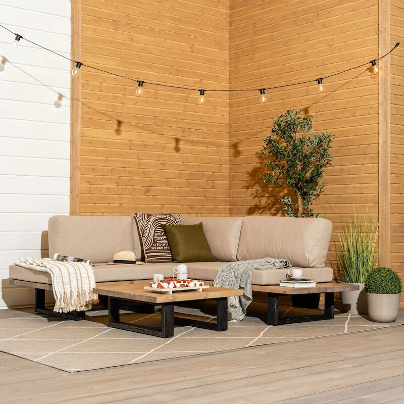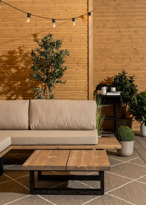 Kuvissa näkyvä myydään erikseen. Yhdistä saman sarjan sohvapöydän kanssa ja luo upea kokonaisuus terassillesi.