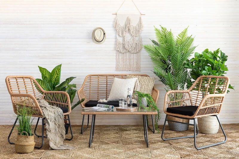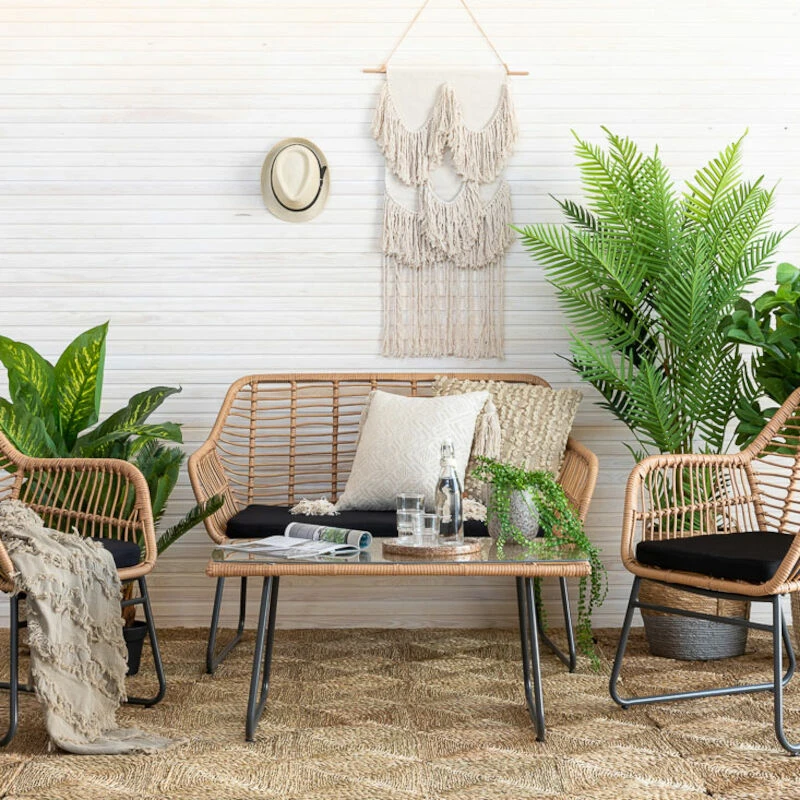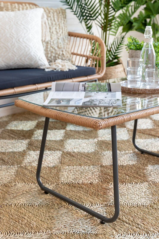 Sirokokoinen Stockton sohvapöytä on UV-suojattua polyrottinkia ja runko mustaksi maalattua metallia. Sohvapöydän kansi on karkaistua lasia. Stockton sohvapöytä on helppo yhdistää mihin tahansa terassiryhmään terassille, parvekkeelle tai ulos. Polyrottinki on helppohoitoinen ja kestävä materiaali.