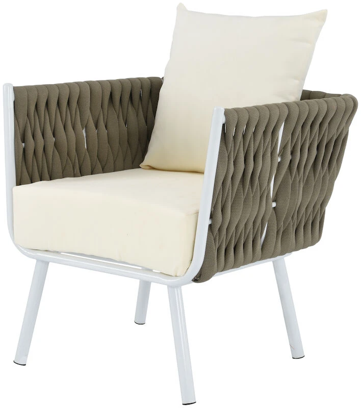 Kauniilla Tunturi nojatuolilla nautit lämpimistä kesäpäivistä tai istut iltaa perheen ja vieraiden kanssa. Tuolin istuin- ja selkätyynyt ovat luonnonväriset, kaksipuoleiset ja irrotettavissa. Tyynyjen täytteenä vaahtomuovi, joka antaa sohvalle miellyttävän puolipehmeän istuinmukavuuden. Verhoilukangas on UV-suojattu. Sohva soveltuu katettuun ulkotilaan/parvekkeelle. Runkomateriaalina laadukas ja täysin ruostumaton alumiinirunko, joka on maalattu valkoiseksi. Kauniit vihreän harmaat, punosmaiset Textiline- kankaasta valmistetut käsi-ja selkänoja antavat nojatuolille näyttävyyttä. Textilene on kestävä ja vedenkestävä materiaali, joka hylkii hyvin hometta ja likaa.
