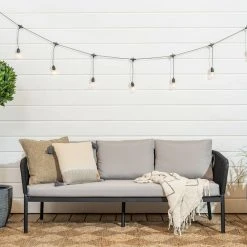Tuohi 3-istuttava puutarhasohva pihalle, parvekkeelle tai patiolle. Tuohi sohvan siro ja ilmava muotoilu tuovat ulkotilohin nykyajan linjakkuutta. Runkomateriaalina laadukas ja täysin ruostumaton alumiinirunko, joka on maalattu mustaksi. Käsi- ja selkänojat ovat uudenaikasta helppohoitoista nailon punosta, joka on mattaisempi ja luonollisemman näköinen kuin perinteinen polyrottinki. Pehmusteet on verhoiltu vettähylkivällä kankaalla, joka ei kuitenkaan ole täysin vedenpitävä. Pehmusteet tulee säilyttää sateelta suojassa. Kuvissa näkyvät Tuohi nojatuolit ovat erikseen ostettavissa.
