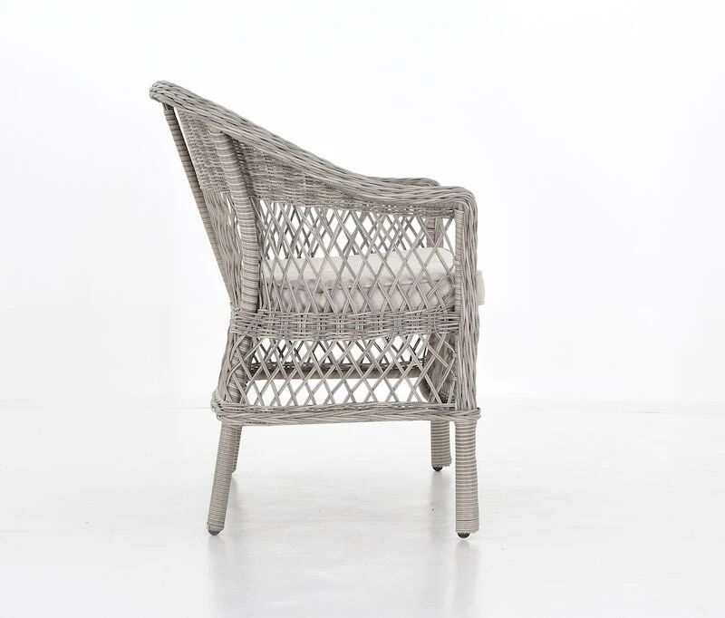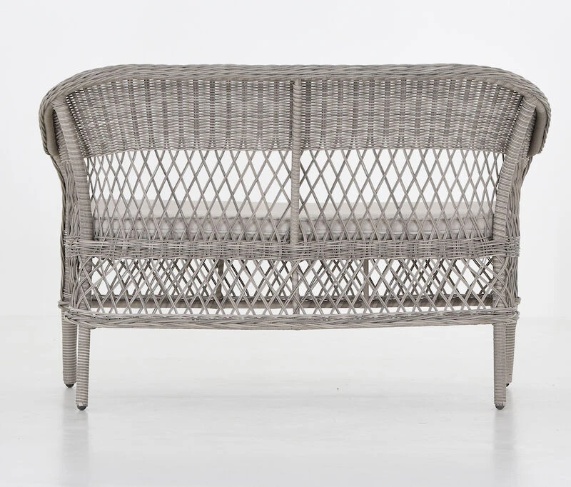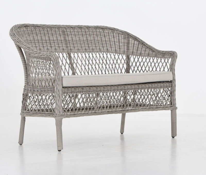 Kaunis ja romanttinen alumiinirunkoinen Vila Hven penkkisohva. Sohvan istuinosa on kauniisti punottua polyrottinkia. Pehmusteen paksuus 6 cm ja se on valmistettu ulkokäyttöön sopivasta polyesterista. Yhdistelemällä Vila Hven-sarjan eri tuotteita, saat romanttista ilmettä terassille. Tuote on hiekan/harmaan sävyinen, sävy vaihtelee valaistuksen mukaan ja taittaa harmaaseen.