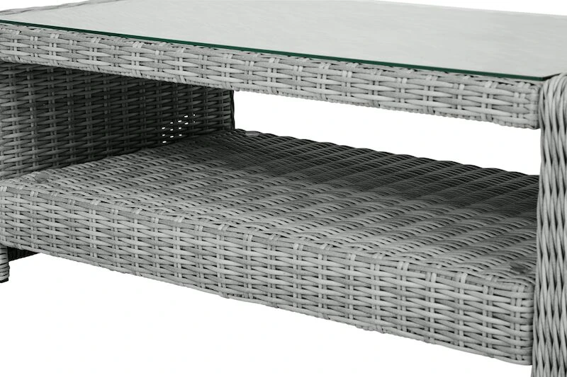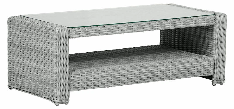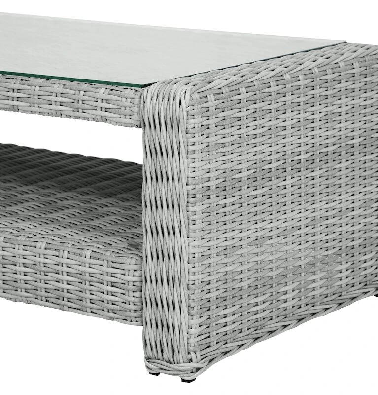 Tukeva Vila Vinga sohvapöytä, jonka viimeistelee kannen päällä oleva lasi. Sohvapöytä tuo mukavasti pientä laskutilaa sohvan ja tuolien äärelle. Pöydän päällä on karkaistu lasi, jonka paksuus on 0,5 cm. Pöydän runko on alumiinia ja punos helppohoitoista, UV-suojattua polyrottinkia.